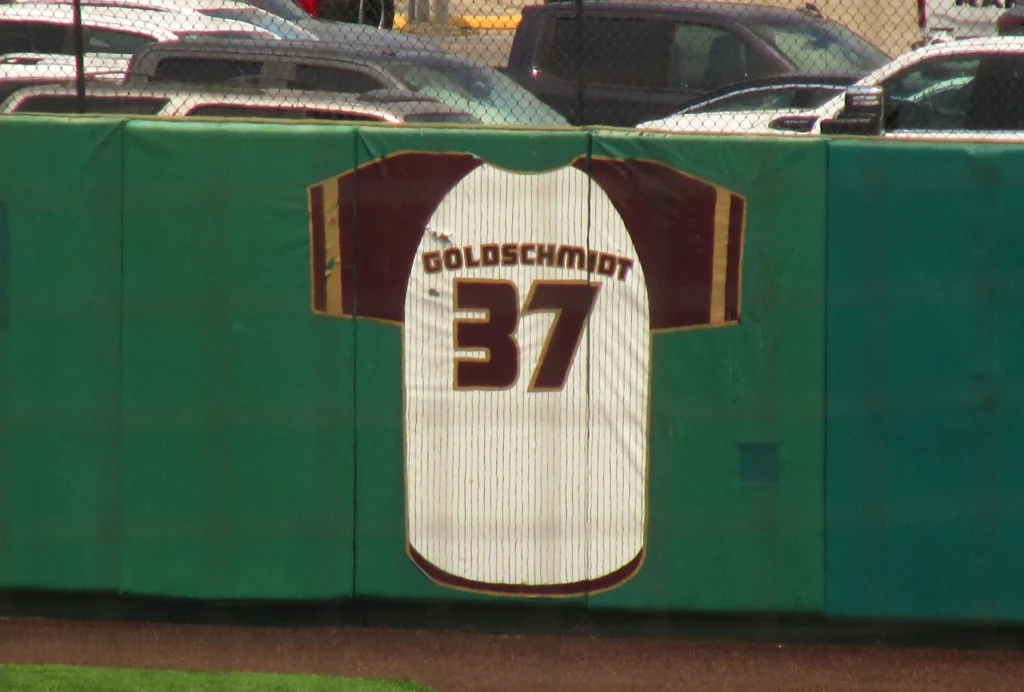 Tippie noted during our conversation that Goldschmidt is “a monumental guy when it comes to Texas State”. The first former Bobcat to have his number retired after becoming the school’s leader in RBI (179) and home runs (36), Goldschmidt’s jersey is displayed on the right field fence at Bobcat Ballpark.